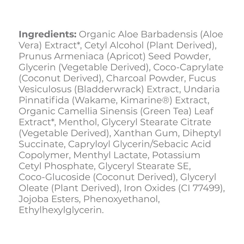 Potassium and magnesium-rich Kimarine® Wakame seaweed is clinically proven to protect skin against environmental pollutants such as exhaust fumes, cigarette smoke, and heavy metals. Bladderwrack is an antioxidant-rich, mineral-rich seaweed known for its water-binding properties, supporting healthy skin hydration and nourishment. Activated Charcoal is known for absorbing 100 to 200 times its weight in impurities and helps remove toxins from the skin's surface. Apricot Seed Powder gently exfoliates away micro-pollutants, and Green Tea delivers potent antioxidant defense.