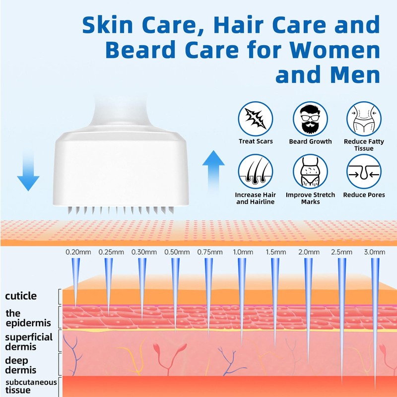 - Versatile application: our microneedle pen is a device that uses small needles to stimulate the production of new collagen in the skin. Ideal for facial, neck, and body regions. Also suitable for hair and beard growth, Whether you're aiming to minimize facial wrinkles, fade scars, or enhance overall skin texture, this derma stamp is tailored to your diverse needs.