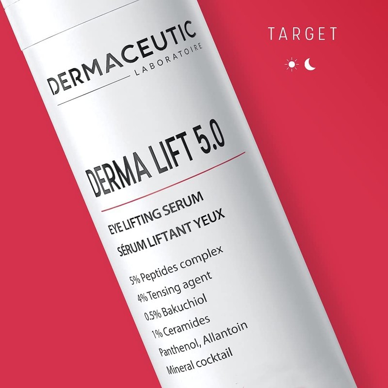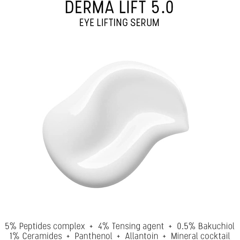 - SOFORTIGER LIFTING-EFFEKT: Derma Lift 5.0 wird zur Verbesserung des Erscheinungsbild von erschlaffter Haut, Ausdrucksfalten und feinen Fältchen empfohlen. Das Serum strafft die Haut nachhaltig und lässt sie jünger aussehen. Empfohlen für die Augenkontur und zur Behandlung von dunklen Ringen und sichtbaren Tränensäcken unter den Augen.