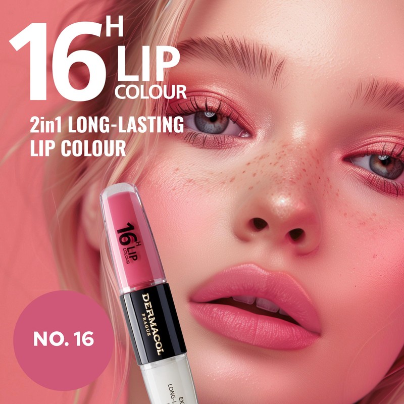 Dermacol Dermacol NEW 16-Hour Lip Colour, Highly Pigmented Glossy Lip Stain, Two-Phase Lip Plumper Gloss, Kissproof Lip Makeup Products with Matte and Glitter Finish, n.16