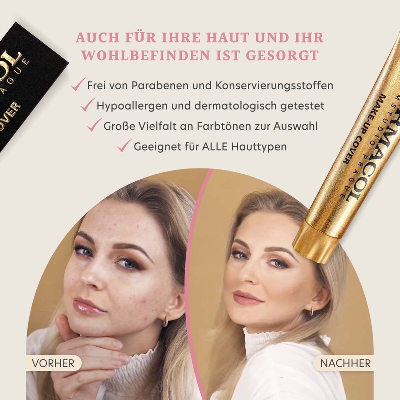 - Strong coverage – the long-lasting cover cream is suitable for all skin types and has extremely good coverage. The professional make-up is perfect for everyday use and work.