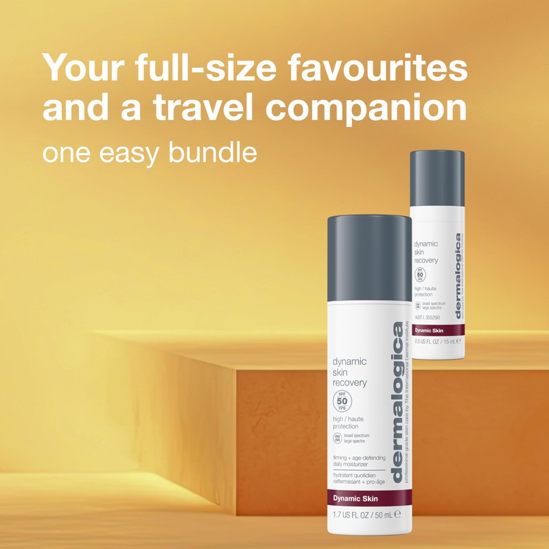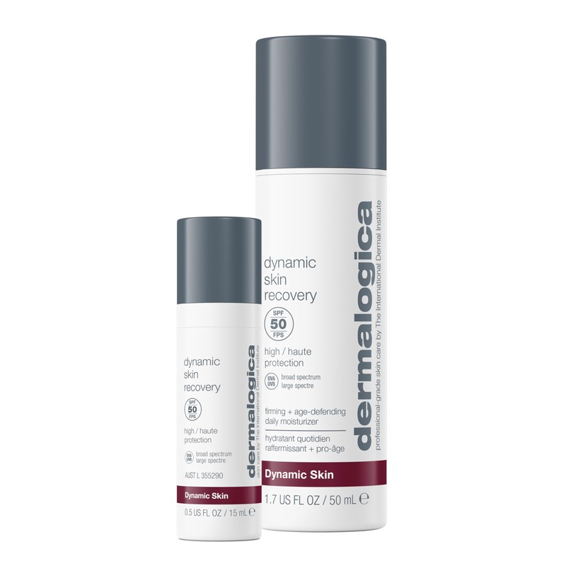 Dermalogica Dynamic Skin Recovery SPF50 Moisturiser - Hydrates & Combats Skin Ageing, Rich In Antioxidant & White Tea, Protects from UVA & UVB Rays, 50ml & Travel Size Bundle