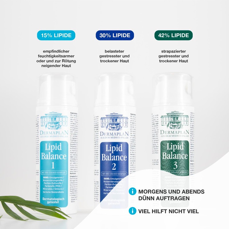 Dermaplan does not apply: Much helps a lot: Because of the very good regenerating and protective properties of the lipid balance cream, less is more and more economical: apply the lipid balance basically thin. For the problematic cream in the morning (clothes!) The lightweight, fast-absorbing Dermaplan Lipid Balance 1 is ideally suited.