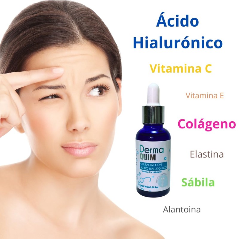 DERMAQUIM - Potente Anti Edad con Ácido Hialurónico, Colágeno, Vitamina C, Vitamina E, Sábila, Elastina y Alantoina - Facial, Previene y Reduce Arrugas, Líneas de Expresión y Manchas (60, Gramos)