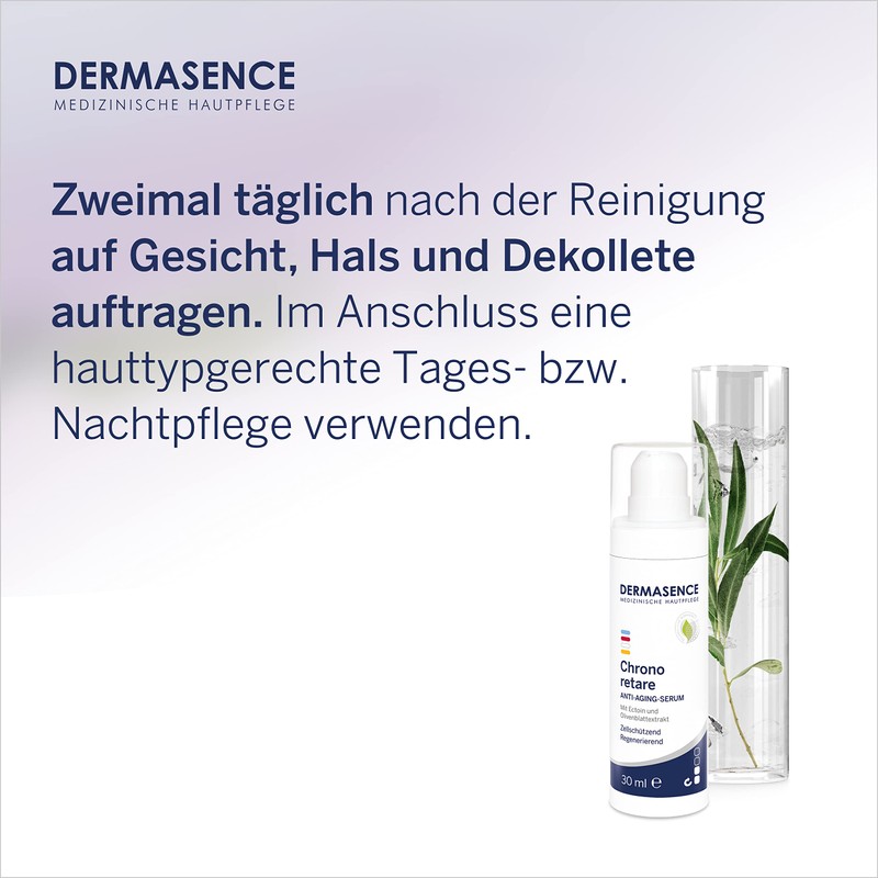 DERMASENCE Chrono Retare Anti-Ageing Serum - Regenerative and Cell-Protecting Intensive Concentrate for Low-Fat and Moisture Skin - for Face, Neck and Cleavage - Olive Leaf Extract - 30 ml