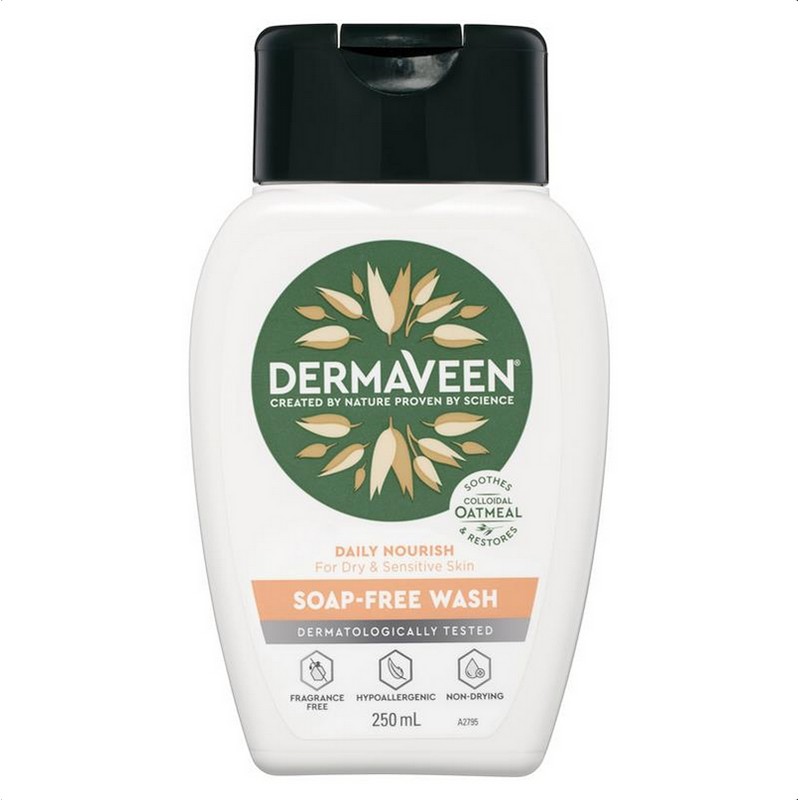 DermaVeen® Daily Nourish Soap-Free Wash is a lightly foaming, non-drying cleanser specifically formulated for dry or sensitive skin. The soothing, pH-balanced body wash effectively cleanses skin without stripping it of its natural moisture like soap can. The nourishing ingredients help maintain the skin's moisture barrier.Suitable For: Vegan friendly. May be used on the face and body. Suitable for the whole family including infants, adults and the elderly.