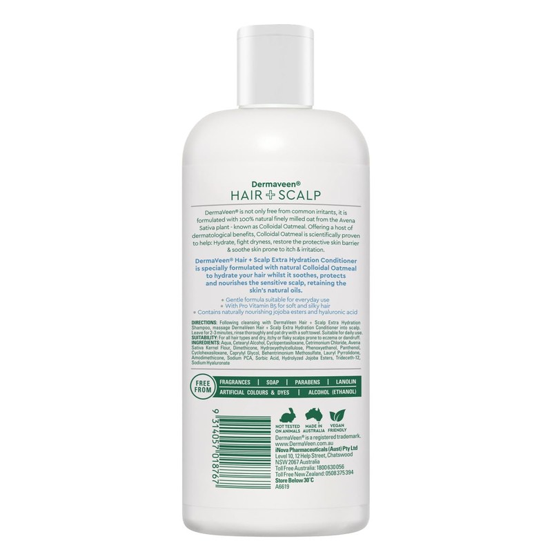 Dermaveen Hair + Scalp Extra Hydration Conditioner 500 ml For Sensitive Scalps and Dry Hair | Soothes Sensitive Scalps And Hydrates Dry Hair, Boosted With OatActiv+ (6 in 1 Skin Benefits) And Hyaluronic Acid