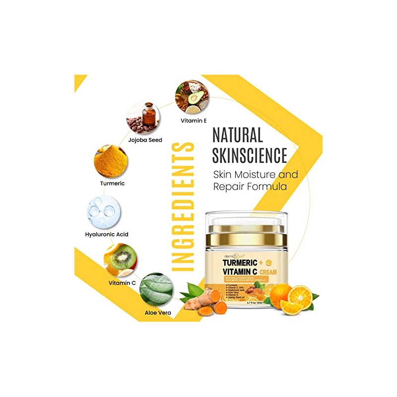 - SKINSCIENCE: Turmeric can help you improve skin texture and glow, also slowing down the effects of aging on the skin, & the skin's elasticity. Turmeric and Vitamin C potent anti-aging properties increase the skin's ability to produce elastin, which gives your skin structure and keeps it rejuvenated and nourishes. It fights signs of aging like dark circles, dry or textured skin, dullness, and even tone. It boosts collagen production.