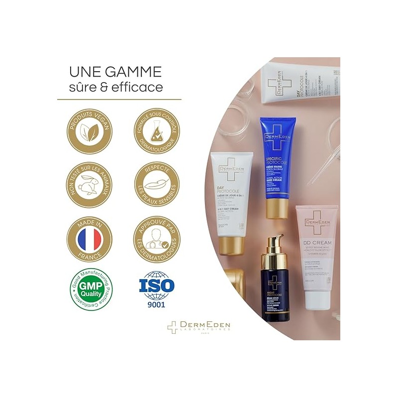 - TOLERANCIA ÓPTIMA 】 Formulado para minimizar el riesgo de reacciones y garantizar una tolerancia óptima, este producto para el cuidado de la piel no contiene perfume y está formulado dermatológicamente. Por lo tanto, se adapta perfectamente a las pieles sensibles y reactivas. Los Laboratorios DermEden garantizan la trazabilidad de todos los ingredientes utilizados en sus fórmulas y fabrican sus productos en Francia, respetando las normas de seguridad más rigurosas
