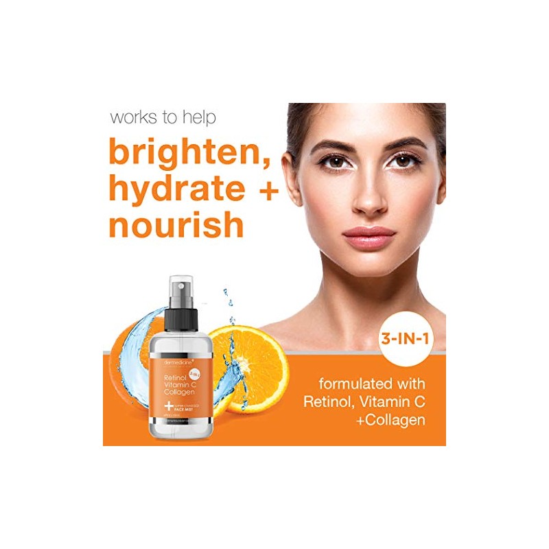 Dermedicine Niebla Facial Anti-Envejecimiento Supercargada 3 En 1 WRetinol, Vitamina C Colgeno Hidrata, Refresca E Ilumina para Una Tez Ms...
