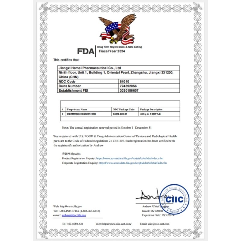 DERMFREE Hemorrhoids Ointment For Piles Haemorrhoids Moisturising Soothes Itching Relieve Pain Eliminate Swelling 42.5g/1.5oz