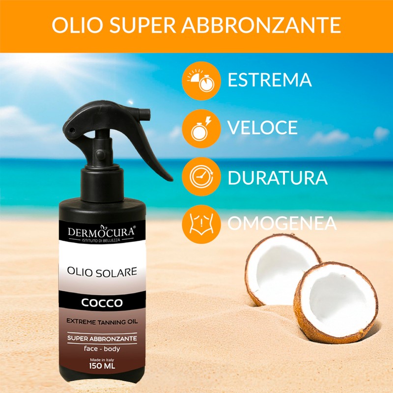 - Intensive und helle Bräunung - Erhalten Sie einen goldenen und tiefen Teint mit Dermocura Super Bräunungsöl; die innovative Formel angereichert mit Kokosöl stimuliert die Pigmentierung für eine dunkle und gleichmäßige Bräune, was sichtbare und dauerhafte Ergebnisse garantiert