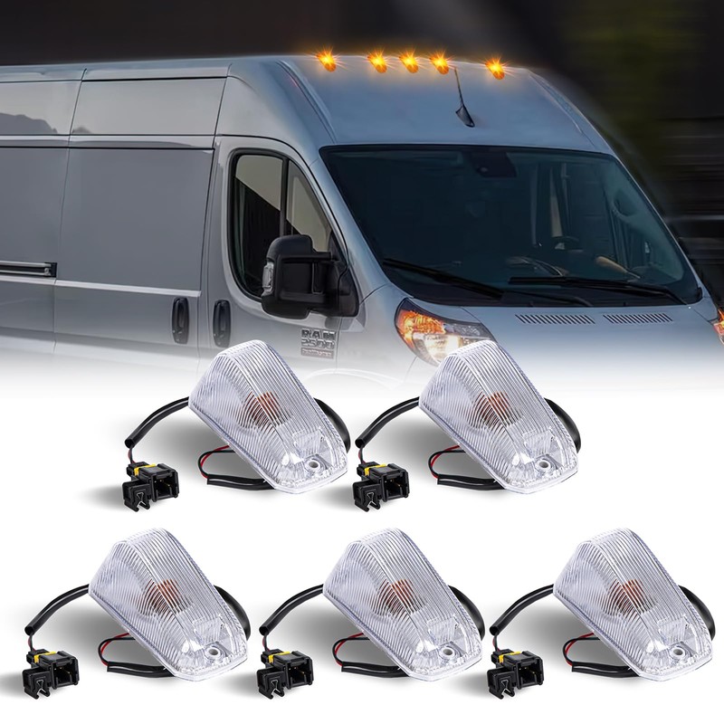 đźš—5PCS Cab Roof Top Marker Lights White Led Clearance Running Lamps for 2014-2023 Dodge Ram ProMaster 1500 2500 3500 with OE Socket, Amber Halogen Bulb(Clear Len)