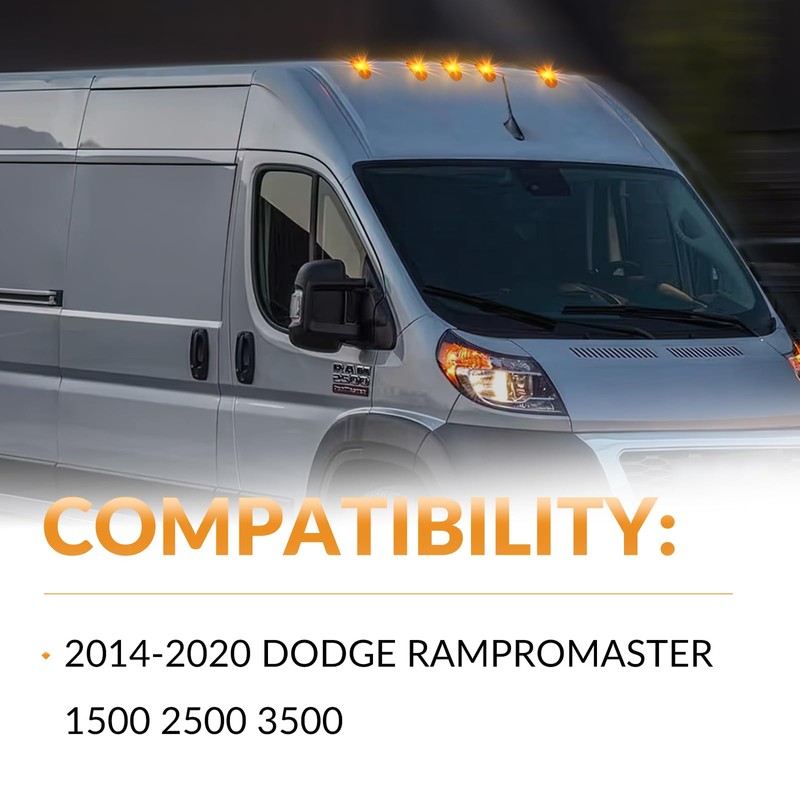 - OEM FITMENT: Cab roof top marker light is compatible with 2014-2023 Dodge Ram ProMaster 1500 2500 3500, OEM Part Number: 68232473AA, 68232473AB, 68232473AC, 68232473AD, 926-109.