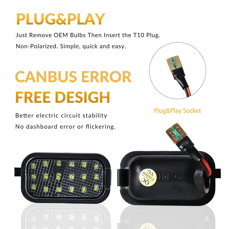 - EASY INSTALLATION: Plug and play, no wiring or modification, no damage to the original housing. Simple upgrade only in 15 minutes or less. Perfect directly replacement for the OEM under mirror puddle light.
