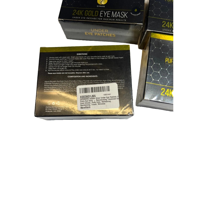Dermora 24K Gold Eye Mask 15 Pairs Under Eye Patches for Puffy Eyes Dark Circles
