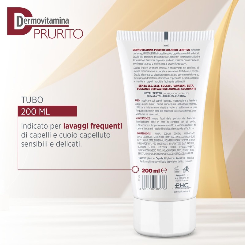Dermovitamina Prurito Soothing Shampoo, 200 ml, Anti-Itch Shampoo for Sensitive, Especially Sensitive and Sensitive Scalp, High Skin Compatibility with Frequent Use, 1