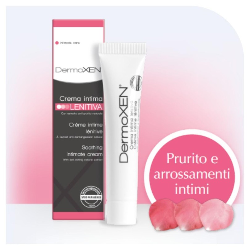 DermoXEN Soothing Intimate Cream mit natürlichem Anti-Juckreiz-Extrakt ist die innovative kosmetische Behandlung, die zum Schutz und zur Linderung von Beschwerden im Intimbereich wie Juckreiz, Rötung oder Brennen empfohlen wird, die häufig mit einer bakteriellen oder Pilzinfektion, starker Trockenheit oder längerem Gebrauch von Tampons oder eng anliegender Kleidung einhergehen. Hinterlässt keine Rückstände, ist nicht fettend, nicht färbend und frei von Duftstoffen. Angereichert mit: - Zanthalen: ein natürlicher Extrakt mit juckreizstillender und kühlender Wirkung. - Avenanthramid: ein Haferprotein-Derivat, mit sofortiger lindernder und beruhigender Wirkung. - Jojobaöl: mit den Vitaminen E und F und Mineralien, mit feuchtigkeitsspendender und regenerierender Wirkung. Empfohlen: - Bei wiederkehrendem und starkem Juckreiz - In Verbindung mit pharmakologischen Behandlungen - Bei leichten Beschwerden bei Mädchen - Um dem äußeren Intimbereich ein Gefühl von Frische und Erleichterung zu verleihen - Bei Juckreiz, der durch den längeren Gebrauch von Tampons und Slipeinlagen verursacht wird. Wirksamkeit in klinischen Studien getestet.