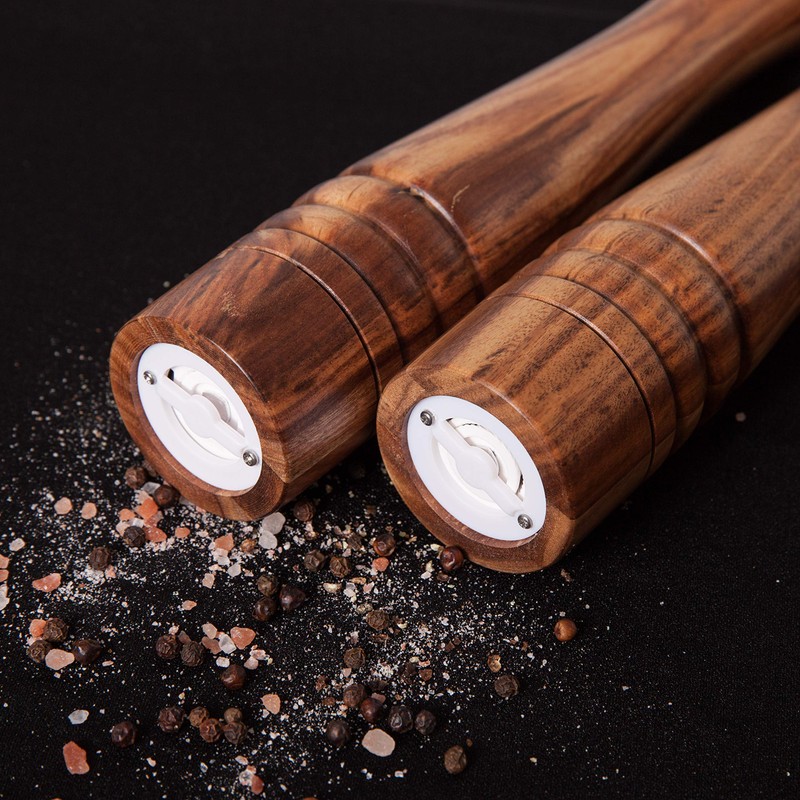 DeroTeno Salt/Pepper Mills - Set of 2 Wooden Spice Mills with Ceramic Grinder