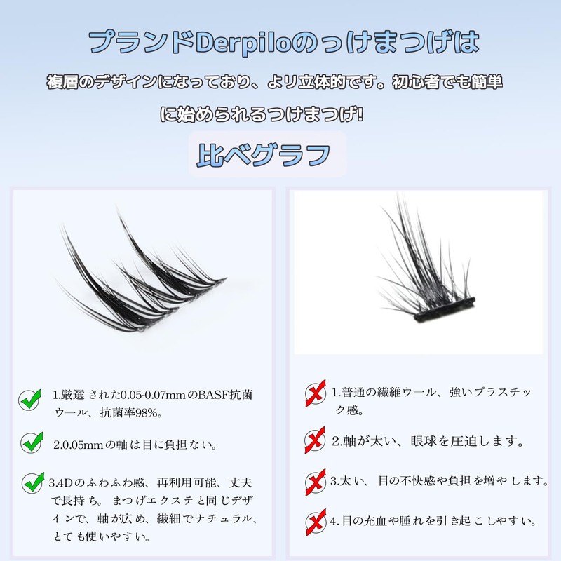 - Natural Bundle, Great Gift: Arc that naturally bends upwards and a variety of combinations of bundling options, this hair is made with a fine fine tip that is fine and detailed so you can easily create a natural and beautiful makeup effect like an idol that looks great in the picture. It also makes your eyes look bigger. GREAT GIFT IDEA - Derpilo high quality eyelashes are a great gift for your lover, family and couples. Stand out from the numerous gifts and help your lover look even better