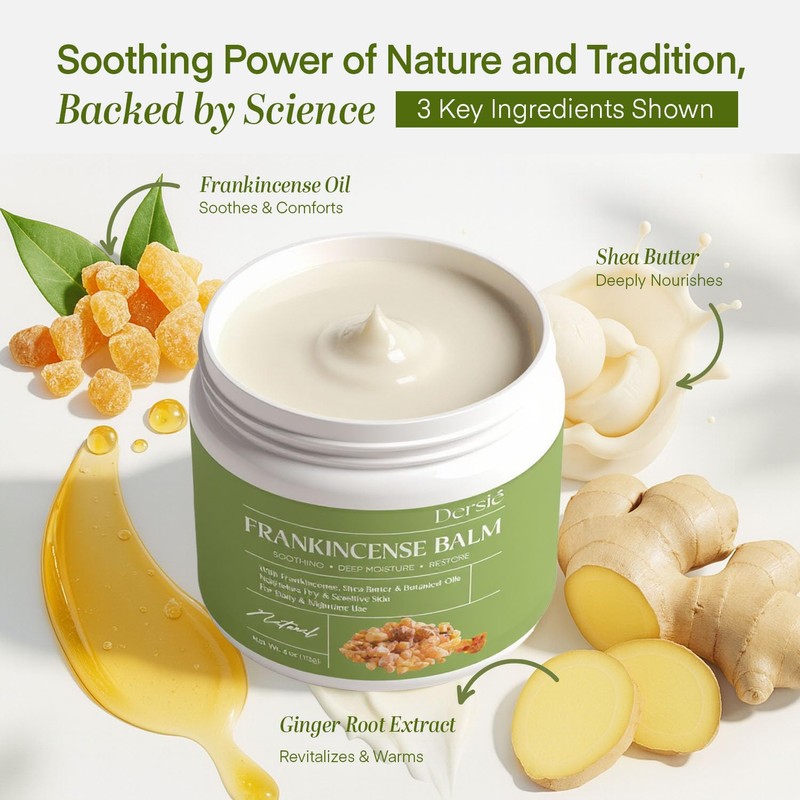 - Clean, Effective Formula: Dersie Frankincense Balm stands out with enhanced soothing benefits paired with deep skin nourishment - offering care beyond typical balms. Crafted with clean, cruelty-free ingredients, it contains no parabens, sulfates, synthetic additives, toxins, fillers, or fragrances, ensuring a gentle, non-irritating experience that you can trust.
