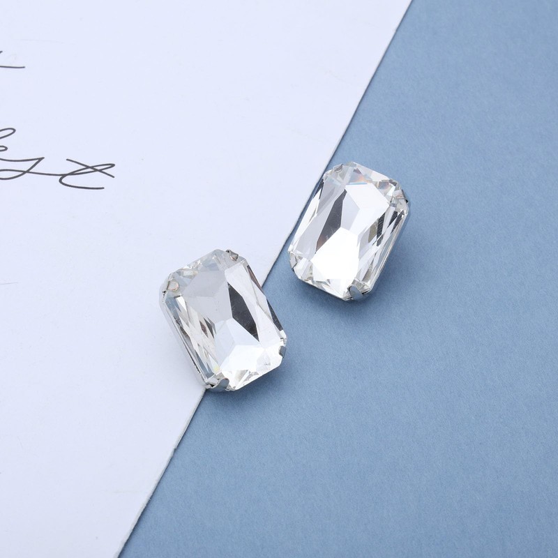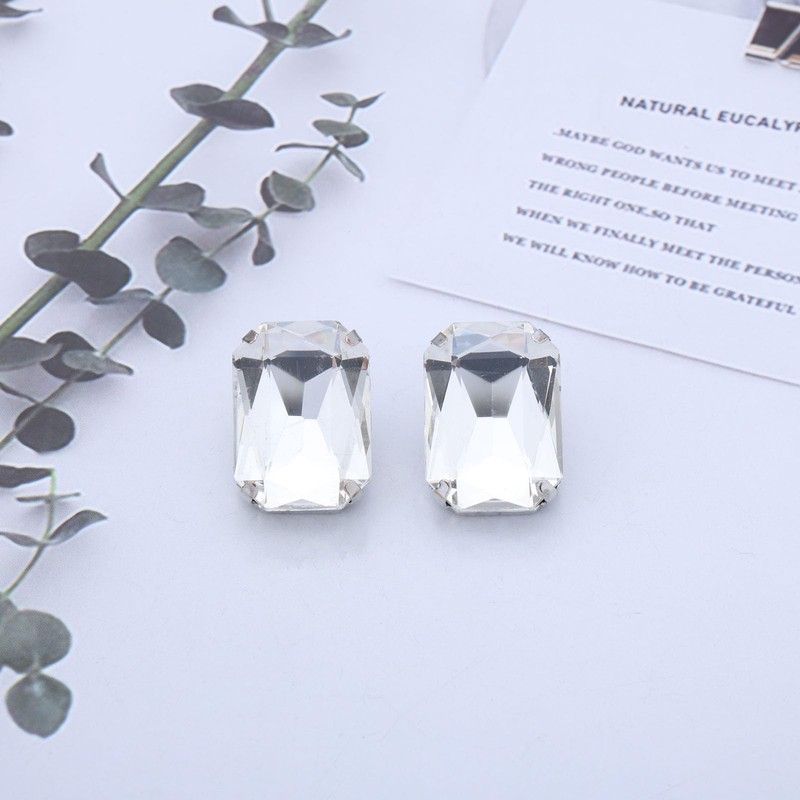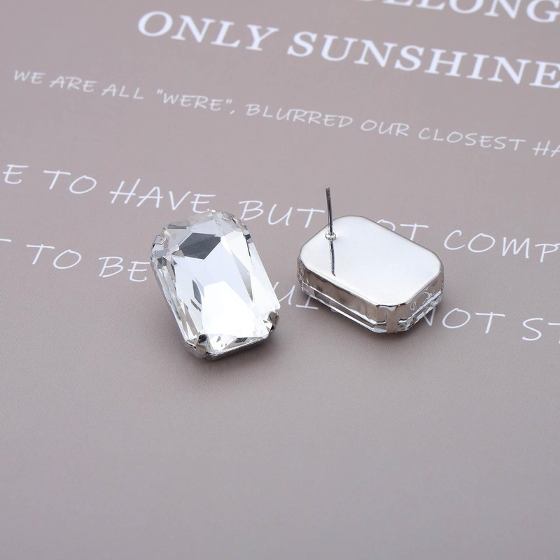 Dervivea Bohemia Crystal Square Earrings Shinny Square Stud Earrings Silver L...