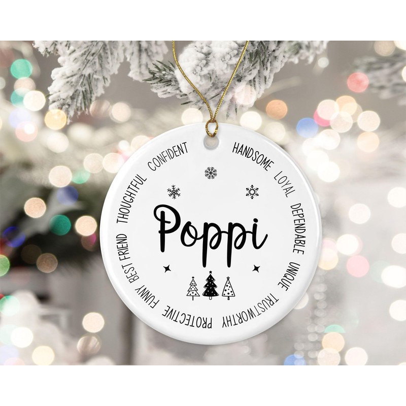 Descriptive Poppi Ornament, Best Poppi Ever Christmas Ornament, Poppi Xmas Keepsake Gift from Daughter Or Son, New Poppi Ornament Gift, First for Poppi Printed on Both Sides