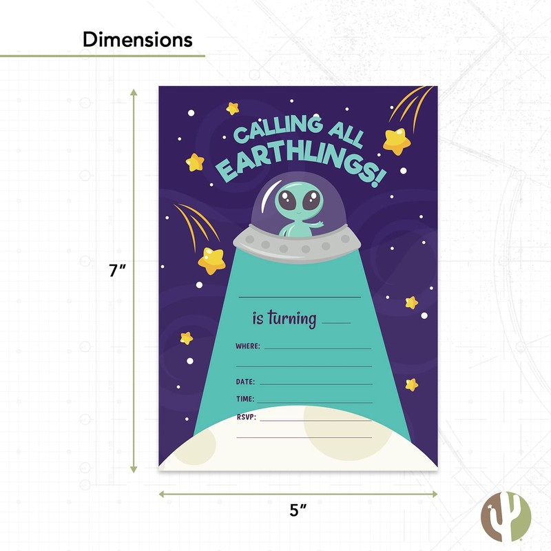 Desert Cactus Alien Style 2 Happy Birthday Invitations Invite Cards (10 Count) With Envelopes Boys Girls Kids Party (10ct)