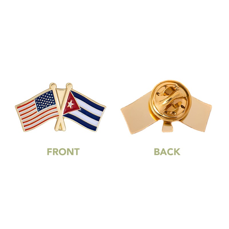 Desert Cactus Cuba Country Lapel Pin Enamel with United States USA Souvenir Hat Men Women Patriotic (Double Flag Pin)