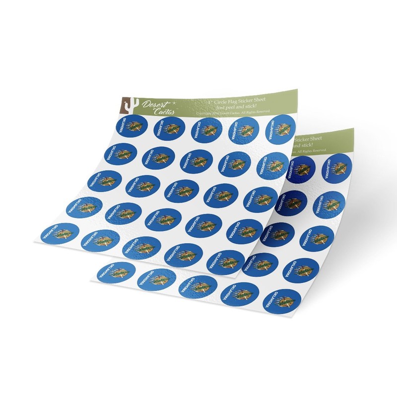 Desert Cactus Oklahoma State Flag Sticker OK Vinyl Decal 1 Inch Round Two Sheets 50 Total Pieces Kids Logo Scrapbook 10.83x8.27 Sheet Car Laptop C
