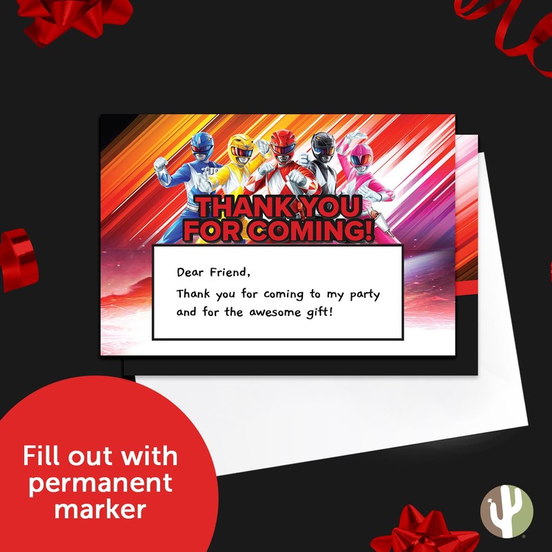 Desert Cactus Power Rangers Thank You Cards Happy Birthday Cards 10 Count With Envelopes Boys Girls Kids Party (Style A)