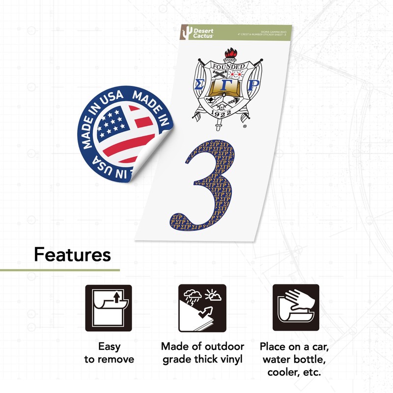 Desert Cactus Sigma Gamma Rho Sticker SGR Poodles Divine 9 Cross Over Line Number 4 Inch Set Decal Laptop Water Bottle Car (4in Line #3)
