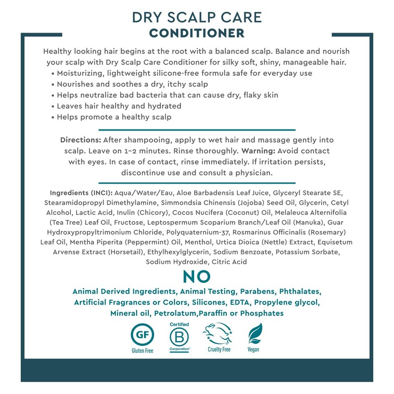 Healthy-looking hair begins at the roots — and with Desert Essence Dry Scalp Conditioner, you can give your scalp the care it deserves. Formulated with a powerful blend of prebiotic chicory-derived Inulin, tea tree oil, and manuka oil, this lightweight conditioner works to balance and nourish your scalp while deeply moisturizing your hair. The addition of aloe and peppermint oil provides a refreshing, cooling sensation that helps to soothe dry, itchy skin, leaving your scalp feeling calm and revitalized. Unlike heavy conditioners that weigh hair down, this silicone-free formula hydrates without buildup, promoting soft, shiny, and manageable hair. Desert Essence is dedicated to creating clean, effective personal care products inspired by nature. Our Dry Scalp Conditioner is free from harsh chemicals, including parabens, sulfates, and phthalates, ensuring that you’re treating your hair and scalp with only the best. Regular use helps neutralize bad bacteria that can cause dryness and flakiness, creating an ideal environment for healthier, stronger hair. Trust Desert Essence to nourish your scalp and elevate your hair care routine with the power of nature.