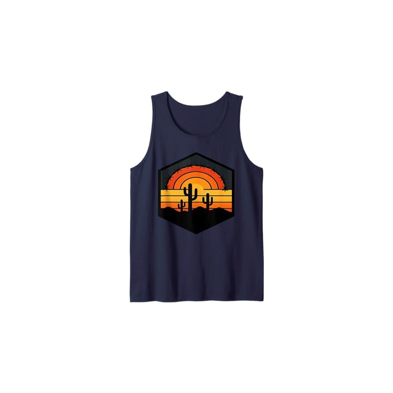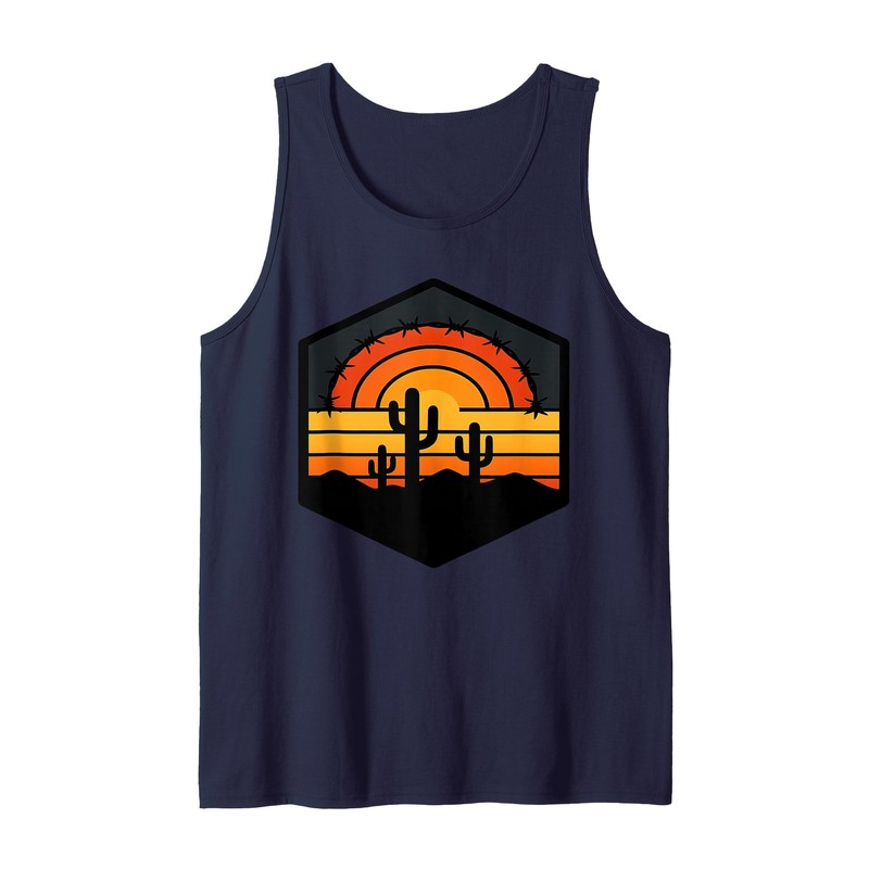 Desert Sunset Cactus Framed In Barbed Wire Westerncore Tank Top