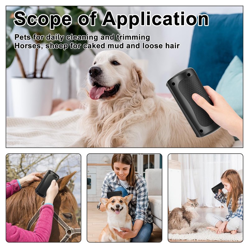 - Effective Deshedding: Our dog brush features sharp metal cutter head, can easily remove loose hair on pets, even dust, mud clumps on horses, cows and sheep. Care about your pets, clean and bathe them regularly to protect the health of their fur