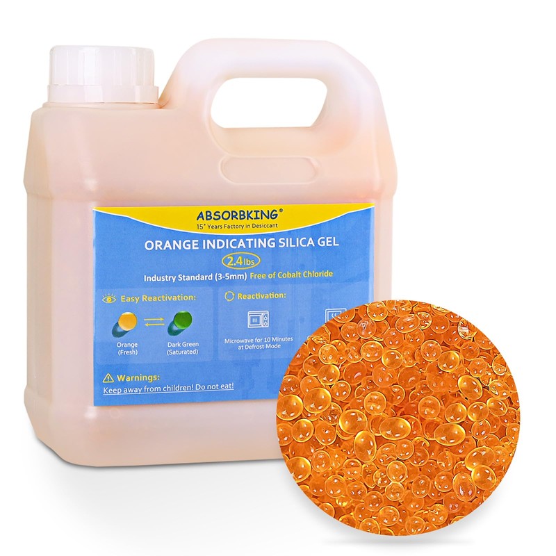 Desiccant Beads – 2.4 LBS Desiccant with Orange Indicating Silica Gel, Premium Silica Gel Beads 3-5mm Industry Standard, Rechargeable Silica Gel Used for 3D Filament