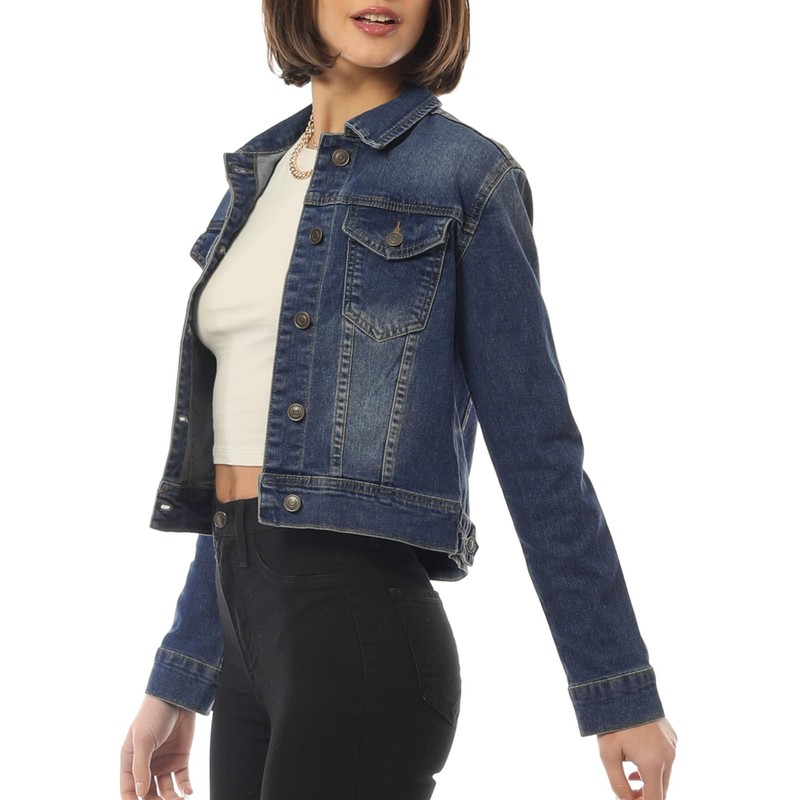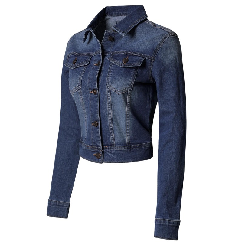 - Featuring: Classic Denim Jean Jackets / Turn down collar / Slim fit jacket with button closure / Two front chest pockets and side pockets / Single-breasted / Long sleeve denim jacket / Stretch denim with slim fit that hits at the hip