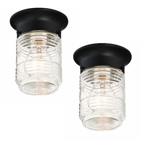 Design House 2-Pack Jelly Jar 1-Light Indoor/Outdoor Flush Mount Ceiling Light, Black, 587576