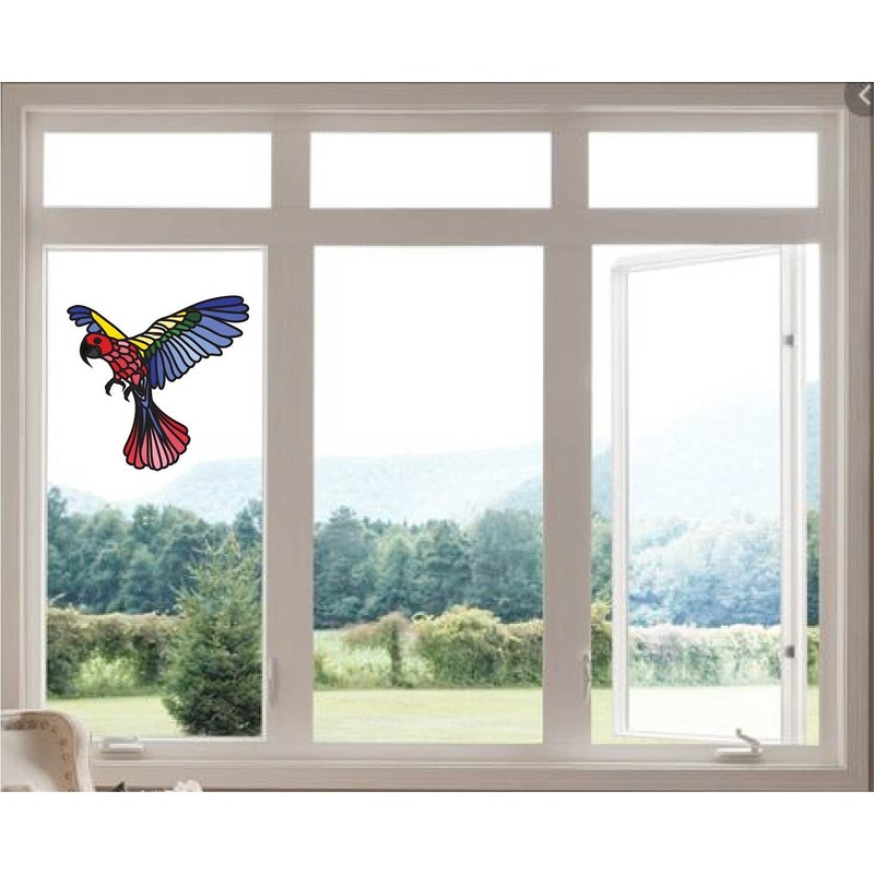 Design With Vinyl – Multicolur Flying Parrot Vinyl Stained Glass Film Window Decoration Static Cling Decals Window Mural Stickers (15x10.5 inches)