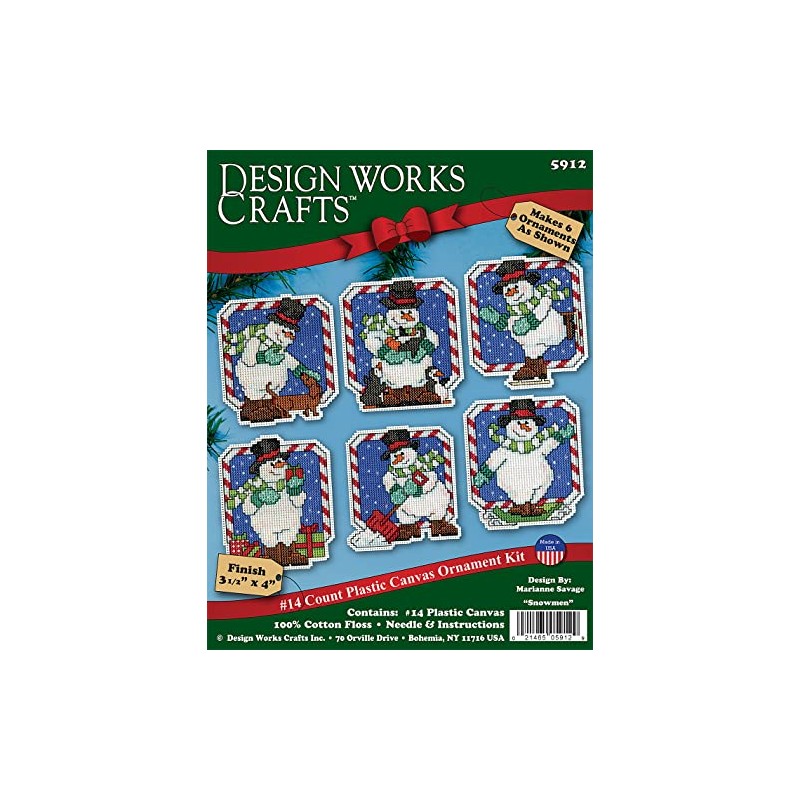 Christmas Collection from Design Works Kit contains: 14 count plastic canvas, 100% cotton embroidery floss, #24 tapestry needle and fully illustrated chart and instructions. Finished Size: 3.5" x 4" each - set of 6 Manufacturer : Design Works Crafts Designer : Marianne Savage Item Number : 5912 Made in USA Genuine - New - Unopened - Sealed in the Original Package - Guarantee! All items are from a smoke-free and pets-free environment.