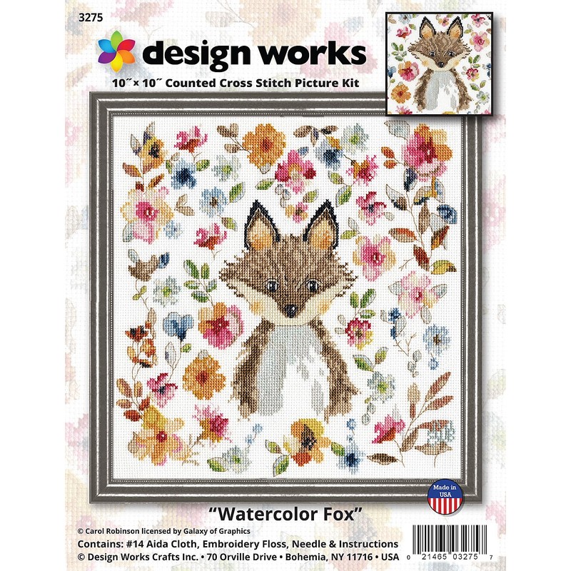 Design Works Crafts Watercolor Fox Counted Cross Stitch Kit