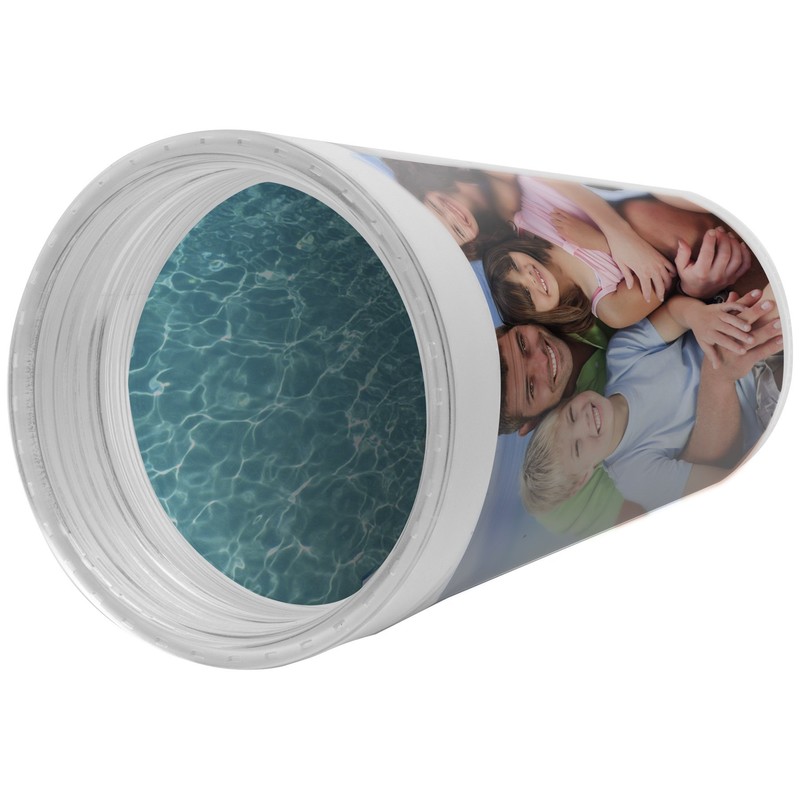 - Holds two inserts, one viewable from the inside and one viewable from the outside