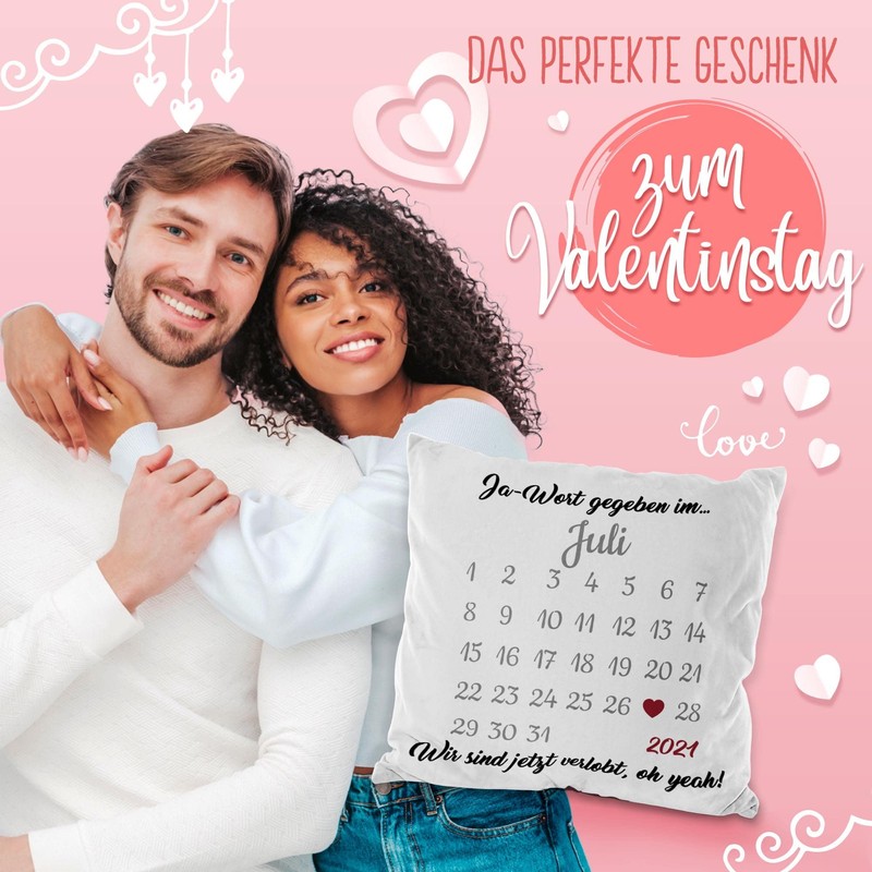 Design your own cushion calendar - with customisable anniversary, with name, text and photo - gift Valentine's Day, anniversary, couple, love - double-sided including filling, white fluffy