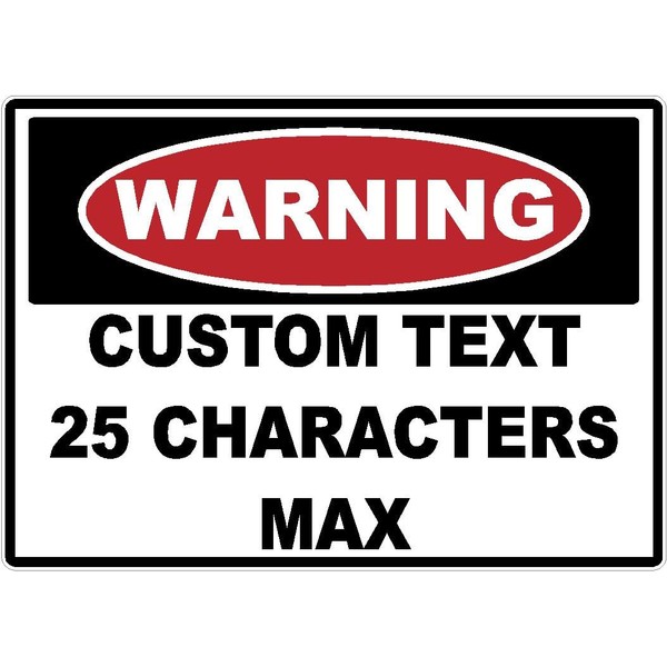Description:Safety Decal Unlimited Design Your Own Custom Warning Red Black Peel and Stick Label Sticker Decal 25 CHARACTER LIMIT 3 LINES MAX Made in USA