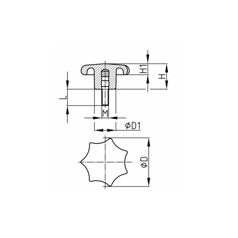 - Hand wheel diameter 50 mm / thread M10 / thread length 20 mm