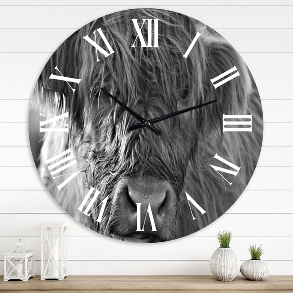 Designart 'Scottish Highland Cows Living On Moorland' Farmhouse wall clock