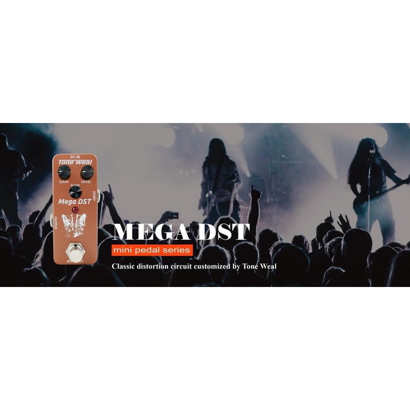 Designed/Made in Taiwan, Part of the MINI pedal series Mega DST MINI Pedal - Classic Distortion, Tone Weal Circuit, Smooth Sustain, True Bypass, Ideal for Metal & Heavy Rhythms