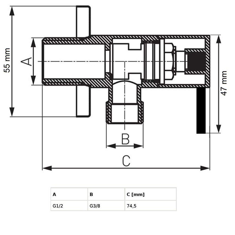 • The angle valve has standardised standard connections and comes with wall rosette.