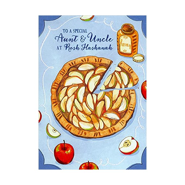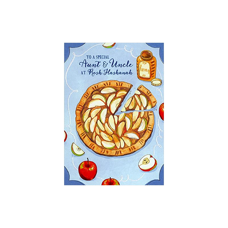 Designer Greetings Apple Pie and Honey on Blue Rosh Hashanah/Jewish New Year Card for Aunt and Uncle