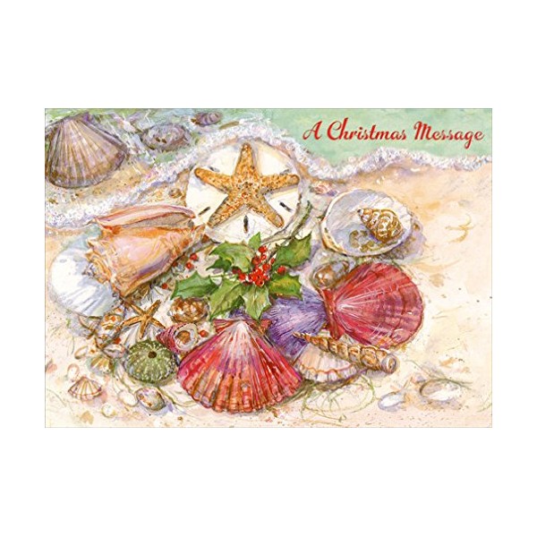 Designer Greetings Boxed Red Farm Studios Christmas Cards, Various Seashells with a Starfish and Holly (Box of 18 Nautical/Coastal Holiday Cards with White Envelopes),Sand & Seashells,125-00836-000